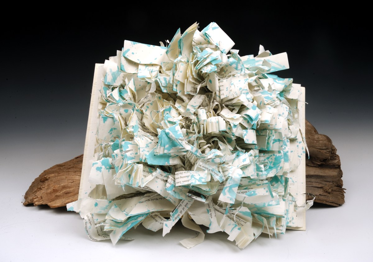 A number of my ideas for art pieces come from seeing photos of other’s people’s art.  I use that photo as a jumping off point to make my own piece.   Sometime ago, I saw a photo that combined torn paper with wood.    I love combining paper and wood  and spent several hours hand-tearing the colored paper, punching the holes and getting it just right.   But when I put it all together, it sucked.  I tried it another way of assembling the piece and it still look awful.  I huffed and I puffed and nothing happened.