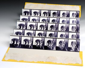 Smaller accordion bound books of Muybridge’s animal motion photos